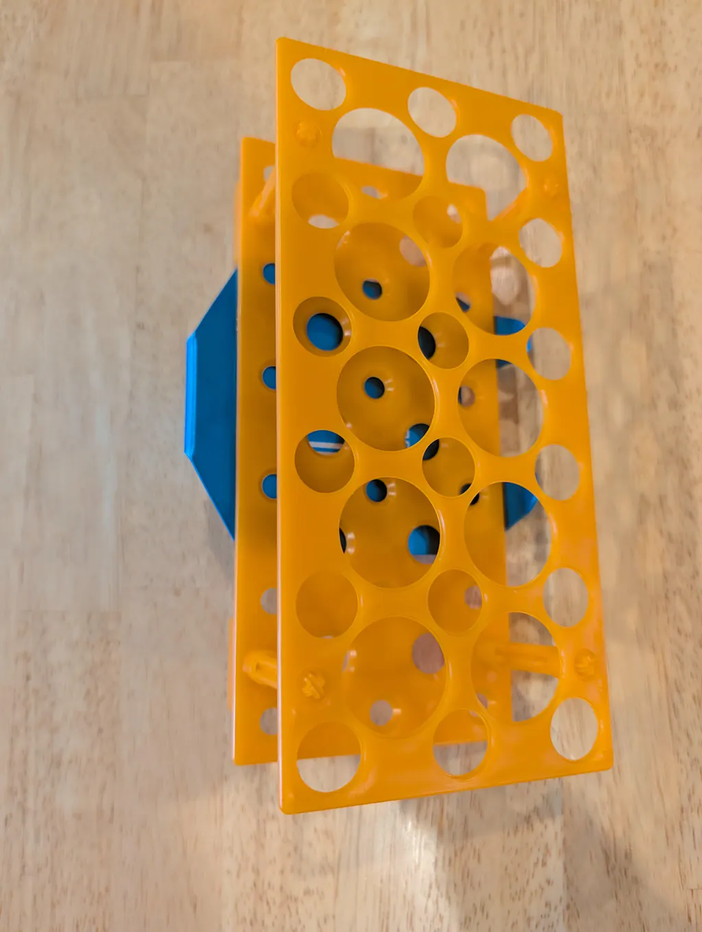30 degree (blue) and 40 degree (gold) angle from surface | 100 mm wide | 40 mm gap to hold round plates | 25 mm long front legs | 113 mm long front face